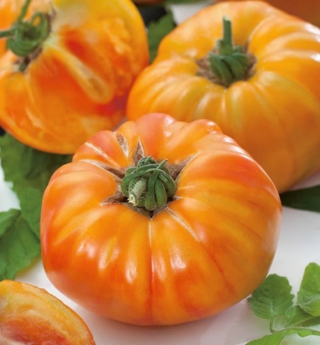 « Croissance indéterminée. Tardive. Très ancienne variété originaire du Kentucky (USA). Tomate particulièrement parfumée, d’une saveur incomparable. Sa chair de couleur jaune à orange est ferme, dense, juteuse, sucrée et ressemble à une tranche d’ananas. Fruit de 250 à 400 g pouvant atteindre 1 kg. »